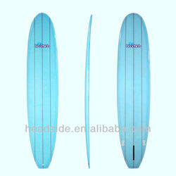 Tabla de surf larga de espuma PU, tres cuerdas, tinte azul, nuevo diseño